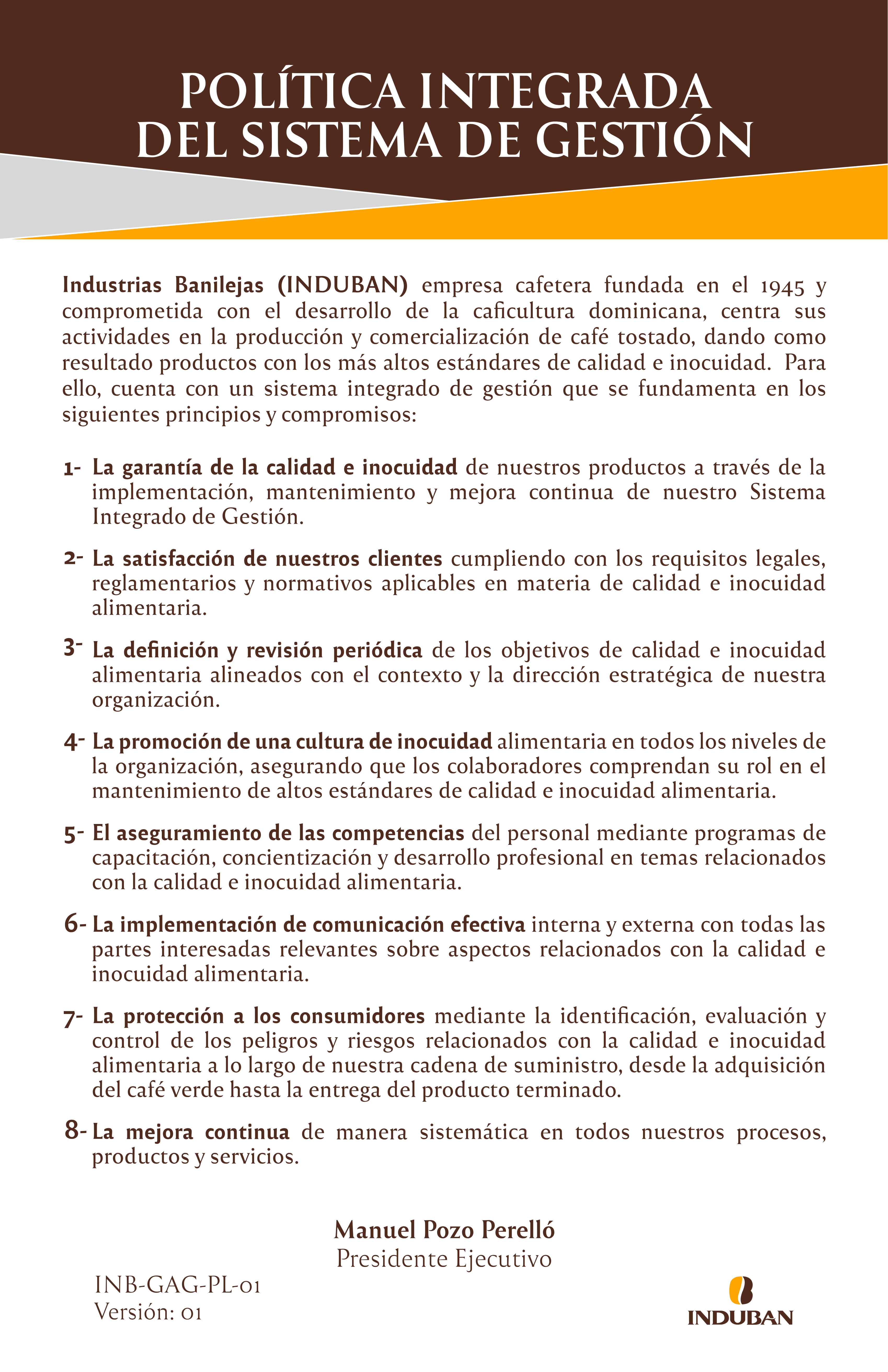 Ha sido el vasto conocimiento del café dominicano, un legado familiar de trabajo duro, compromiso con la calidad y la visión de innovación, los factores primordiales para que Induban sea la empresa productora de café líder en la República Dominicana.